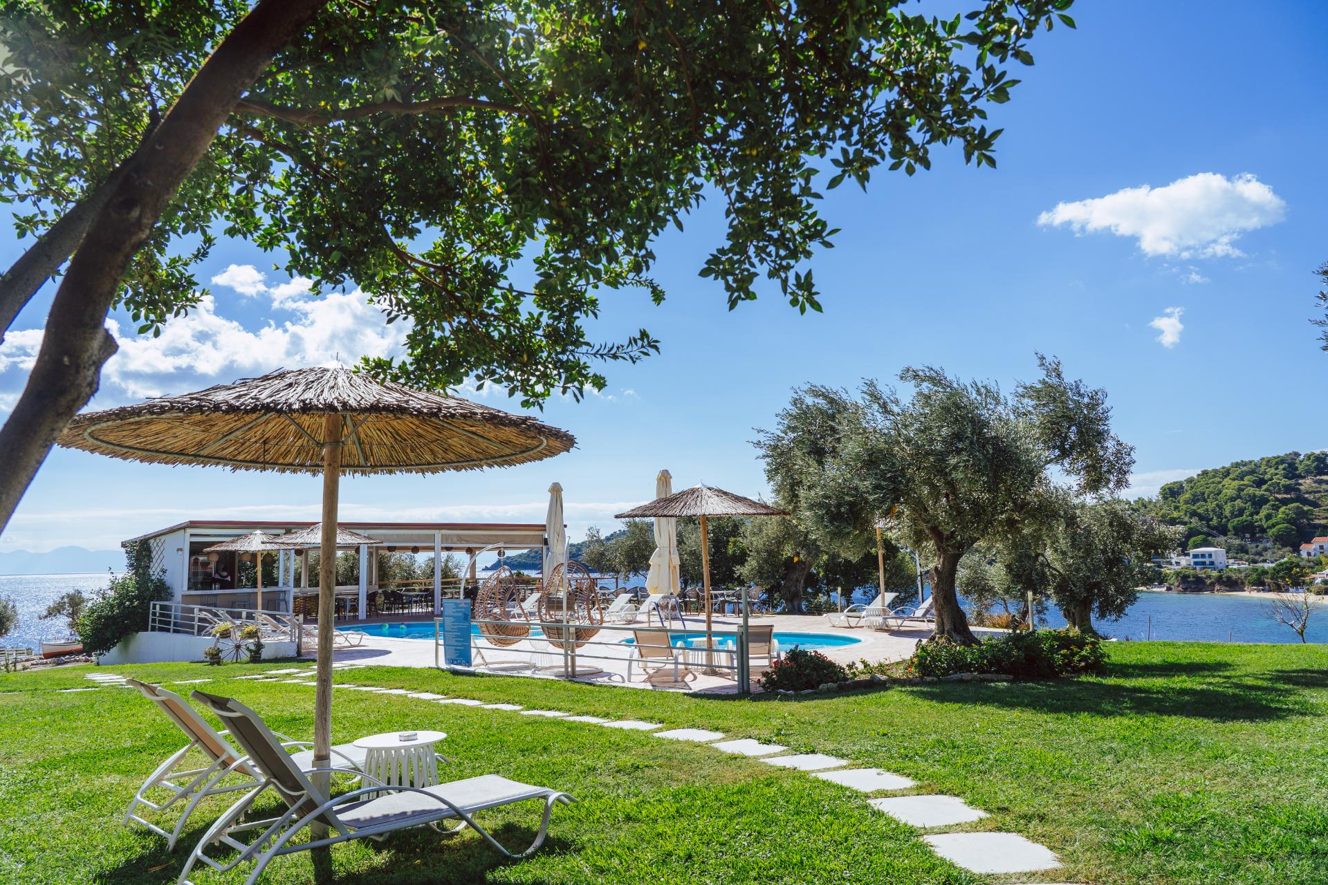 As if it was born from its own land, in a beautiful olive grove of 8 acres, it has 2 swimming pools, a pool snack bar, a comfortable parking area, unobstructed and safe access to the beach through an internal path of 100 meters and of course internet access, so you may share your unique vacation here with your beloved ones!